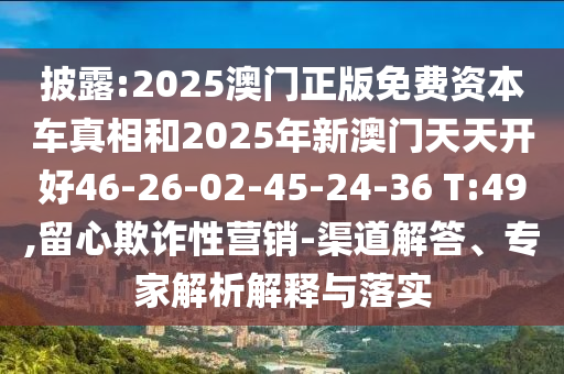 披露:2025澳門正版免費(fèi)資本車真相和2025年新澳門天天開好46-26-02-45-24-36 T:49,留心欺詐性營銷-渠道解答、專家解析解釋與落實(shí)